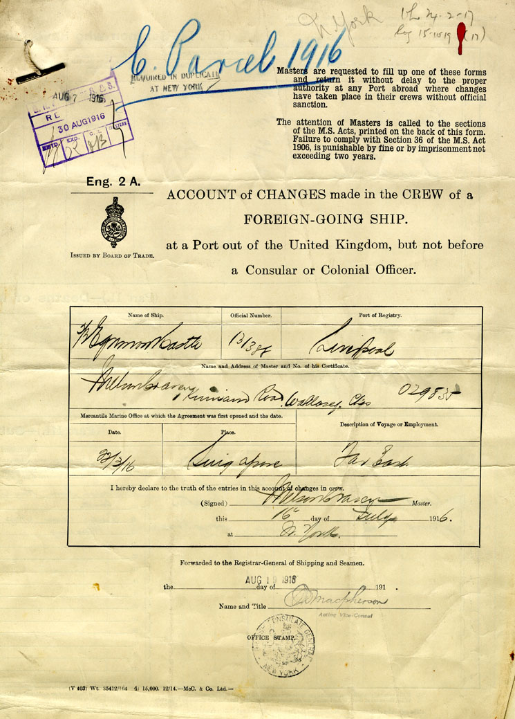 Account of Changes made in the Crew of a Foreign-Going Ship at a port out of the United Kingdom, but not made before a Consular or Colonial Officer