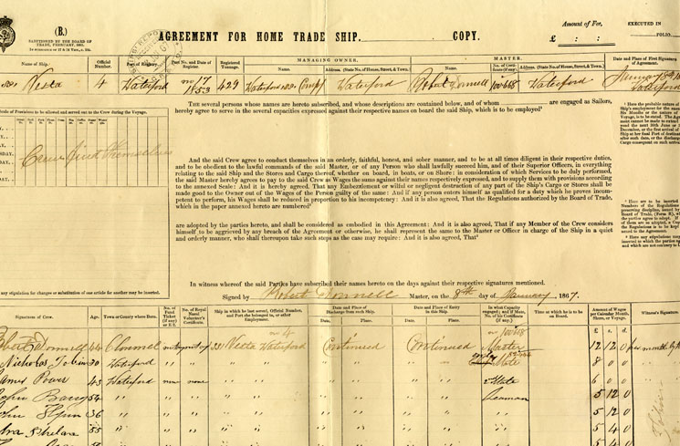 Agreement between a ship's master and crew for a period of six months.