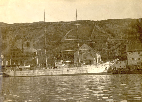 Photo Title:Unidentified vessel docked at Job Brothers and Co. south side premises, St. John's, Newfoundland.