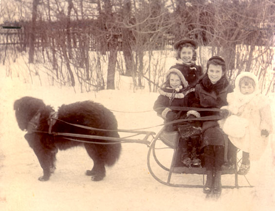 | Photo Title: | Four children on a sleigh towed by a Newfoundland dog. |