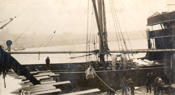 Description:A sealing vessel at Job Brothers & Co. south side premises, St. John's, Newfoundland, unloading seal pelts.