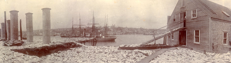 | Description: | Job Brothers & Co. south side premises in St. John's, Newfoundland, with codfish drying on flakes. |