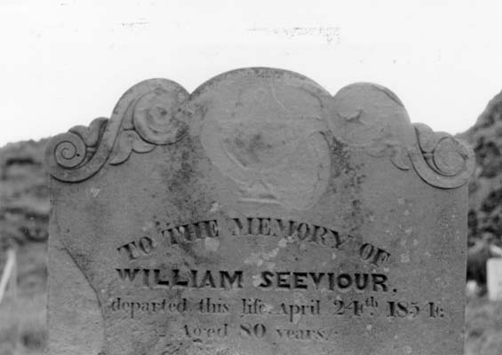| Description: | Headstone inscription reads, "To the memory of William Seeviour, departed this life, April 24th, 1854: Aged 80 years." |