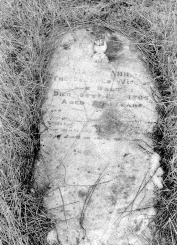 | Description: | Headstone inscription reads, "Mary Ann, the beloved wife of John Dalton, died Oct. 12th, 1865, aged 24 years." |