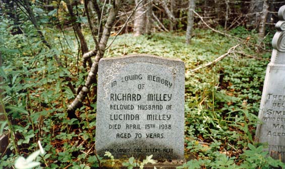 | Description: | Headstone inscription reads, "In loving memory of Richard Milley beloved husband of Lucinda Milley, died April 15th 1938 aged 70 years. Our loved one sleeps here." |