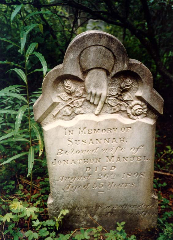 | Description: | Headstone inscription reads, "In memory of Susannah, Beloved wife of Jonathon Manuel, died August 26th 1898, aged 55 years." |