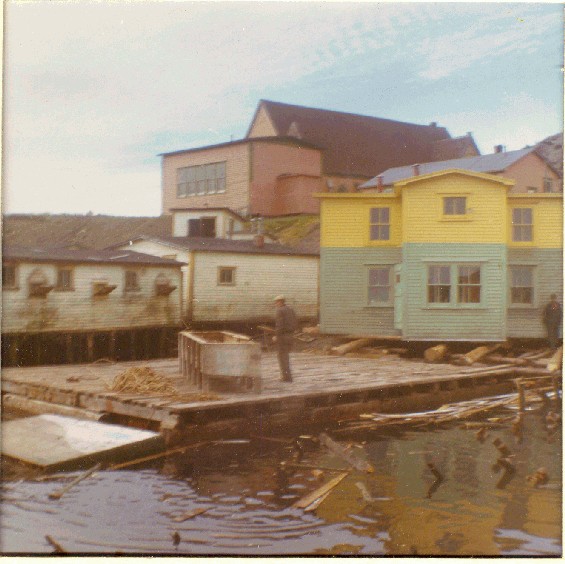 Titre de la photo:Maison de Jack Wadman, près de la barge devant la transporter de Bar Haven à Southern Harbour (baie de Placentia)
