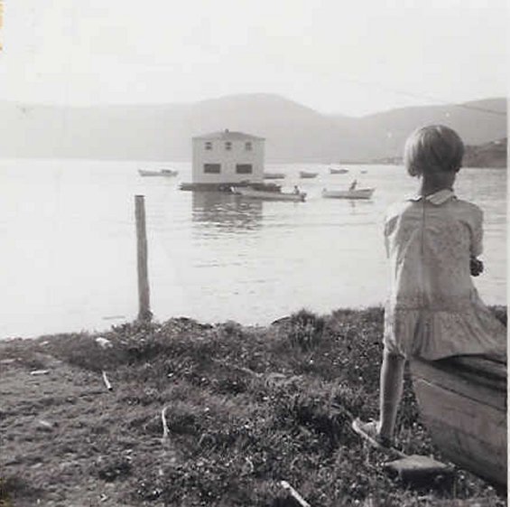 | Titre de la photo: | Maison de Mike et Hilda Symmonds, remorquée sur l'eau de NE Crouse à Conche |