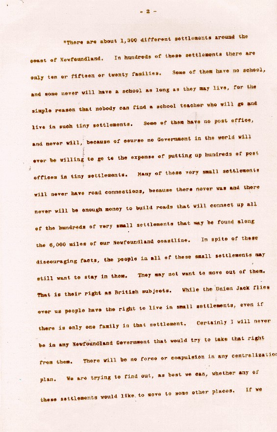 | Description: | Page 2 of a 5-page statement issued from Premier J.R. Smallwood on January 9th, 1958 |