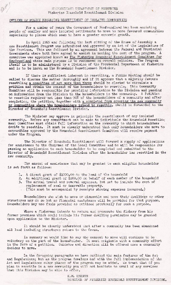 | Photo Title: | Outline of Policy Regarding Resettlement of Isolated Communities [in Newfoundland] |