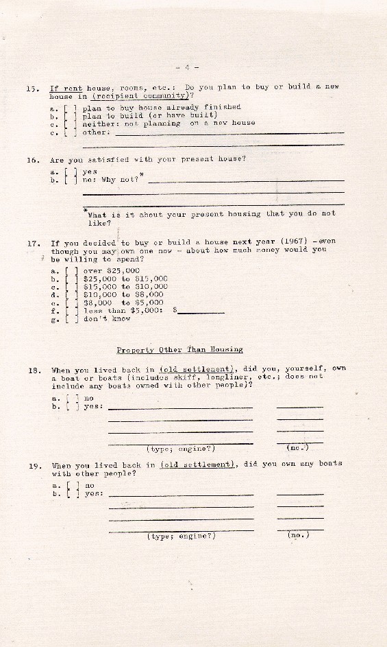 Description:Page 4 of a 19 - page Household Resettlement Questionnaire from Newfoundland, 1966