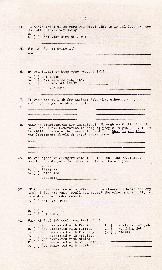| Description: | Page 9 of a 19 - page Household Resettlement Questionnaire from Newfoundland, 1966 |