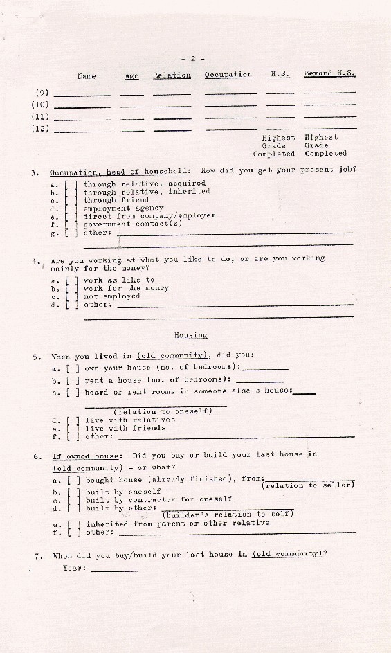 Description:Page 2 of a 19 - page Household Resettlement Questionnaire from Newfoundland, 1966