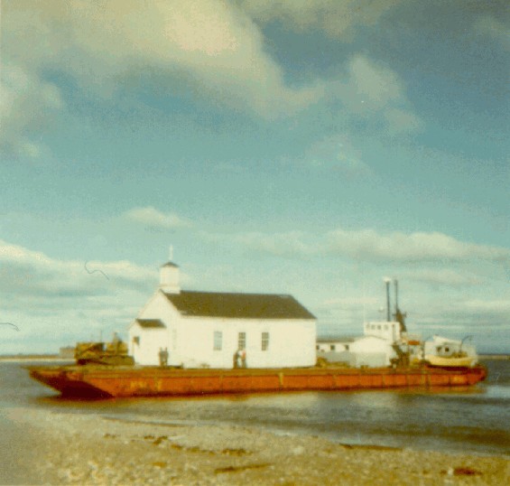| Photo Title: | Anglican Church, Point Rosie on the barge being moved to Frenchman's Cove, Fortune Bay, Newfoundland |