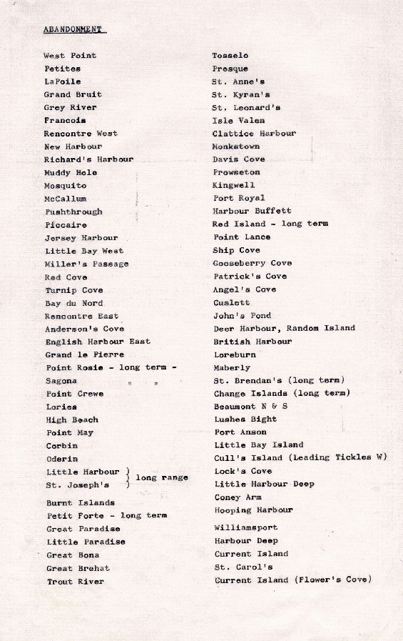 Photo Title:List of settlements in Newfoundland slated for abandonment