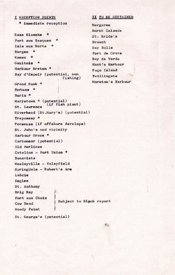 Photo Title:List of "reception points" for people from abandoned communities in Newfoundland