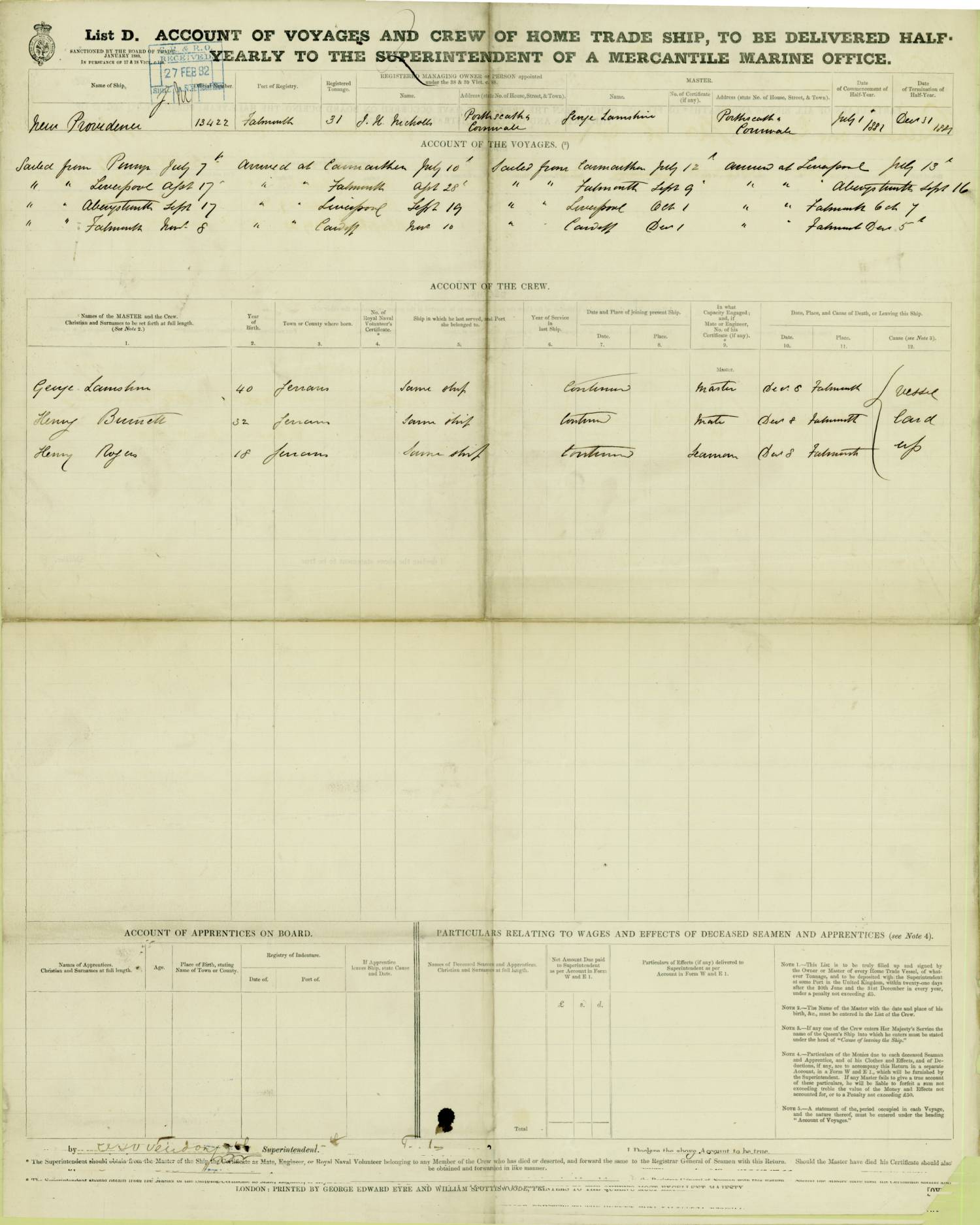 1881 Crew List Details