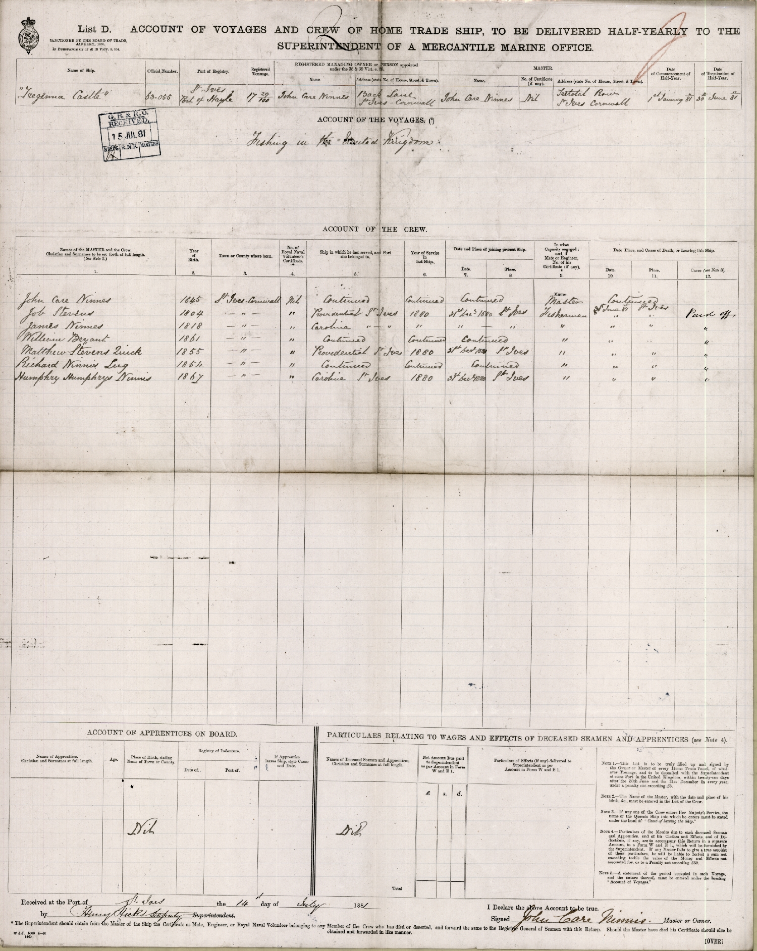 1881 Crew List Details