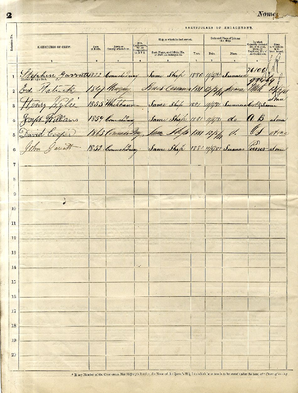 1881 Crew Member Details