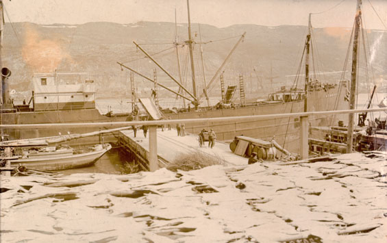 | Photo Title: | S.S. "Bernicia" at Job Brothers and Co. north side premises, St. John's, Newfoundland |