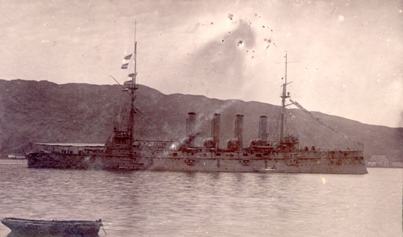 Description:H.M.S. "Drake" in the harbour at St. John's, Newfoundland.