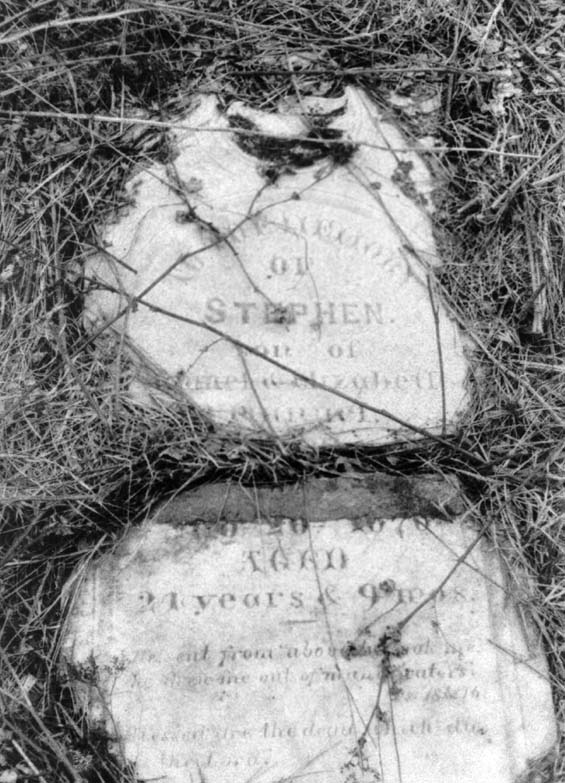 | Description: | Stephen, son of Elizabeth, died at the age of 21 years and 9 mos. |