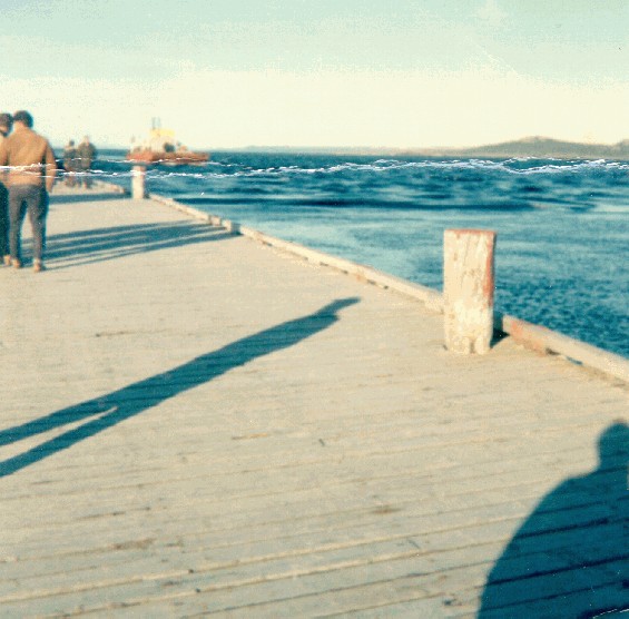 Titre de la photo:Maison de Stanley Keeping, sur la barge qui l'a transportée de Point Rosie à Garnish