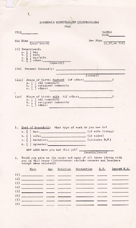 Photo Title:Household Resettlement Questionnaire - 1966