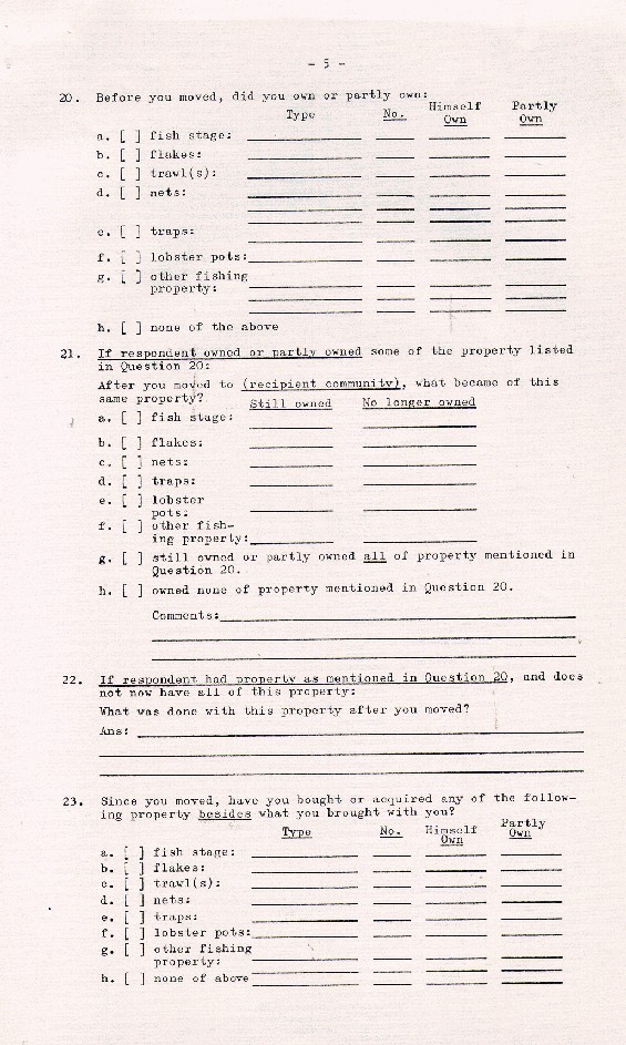Description:Page 5 of a 19 - page Household Resettlement Questionnaire from Newfoundland, 1966