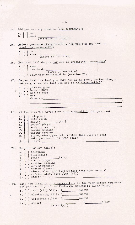 Description:Page 6 of a 19 - page Household Resettlement Questionnaire from Newfoundland, 1966
