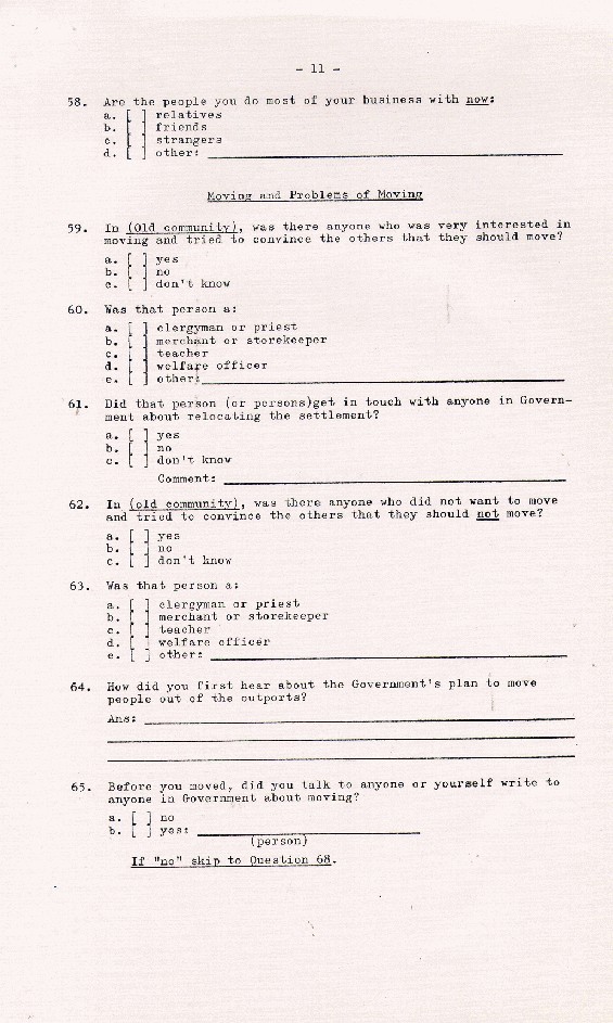 | Description: | Page 11 of a 19 - page Household Resettlement Questionnaire from Newfoundland, 1966 |