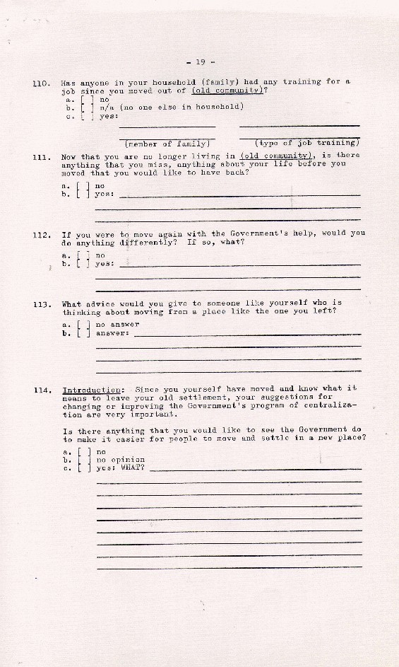 Description:Page 19 of a 19 - page Household Resettlement Questionnaire from Newfoundland, 1966