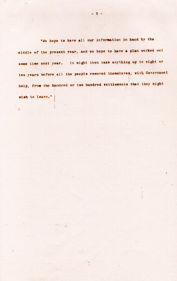 Description:Page 5 of a 5-page statement issued from Premier J.R. Smallwood on January 9th, 1958